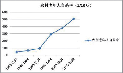 他指着这根节节攀高的上行线条,解释其含义:1980年代至今,在农村,老人自杀率越来越高,情况还在恶化。