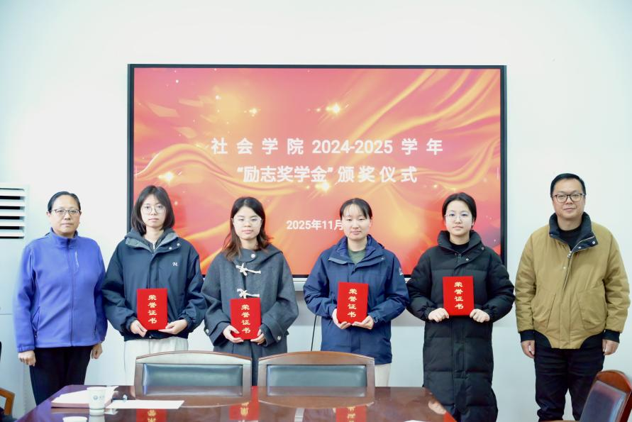 “励志奖学金”颁奖仪式在学院111会议室举行,严佳、曾欣瑶、安艳茹、曾梦婷等四名本科生、研究生获得表彰。院党委书记柳芳、副书记应志豪、班主任代表、辅导员、获奖学生及学生代表参加了颁奖仪式,仪式由院党委副书记应志豪主持。